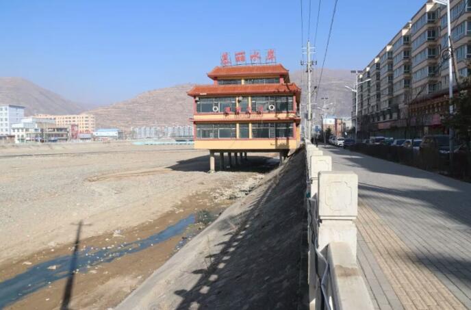 岷县岷阳镇迭藏河河道内的违规建筑物“慕丽岸”GTV茶楼